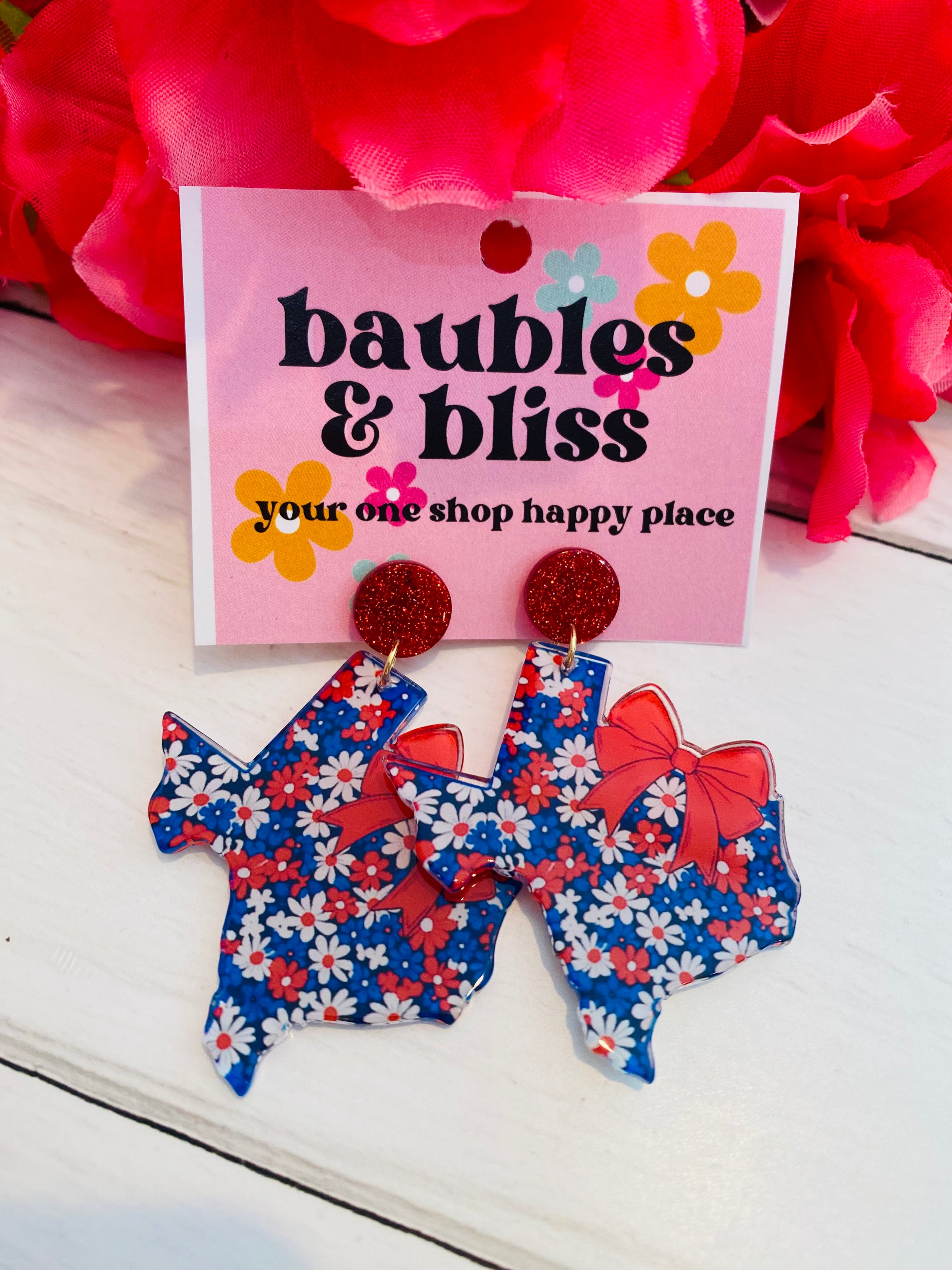 Red White & Blue Floral Texas Earrings
