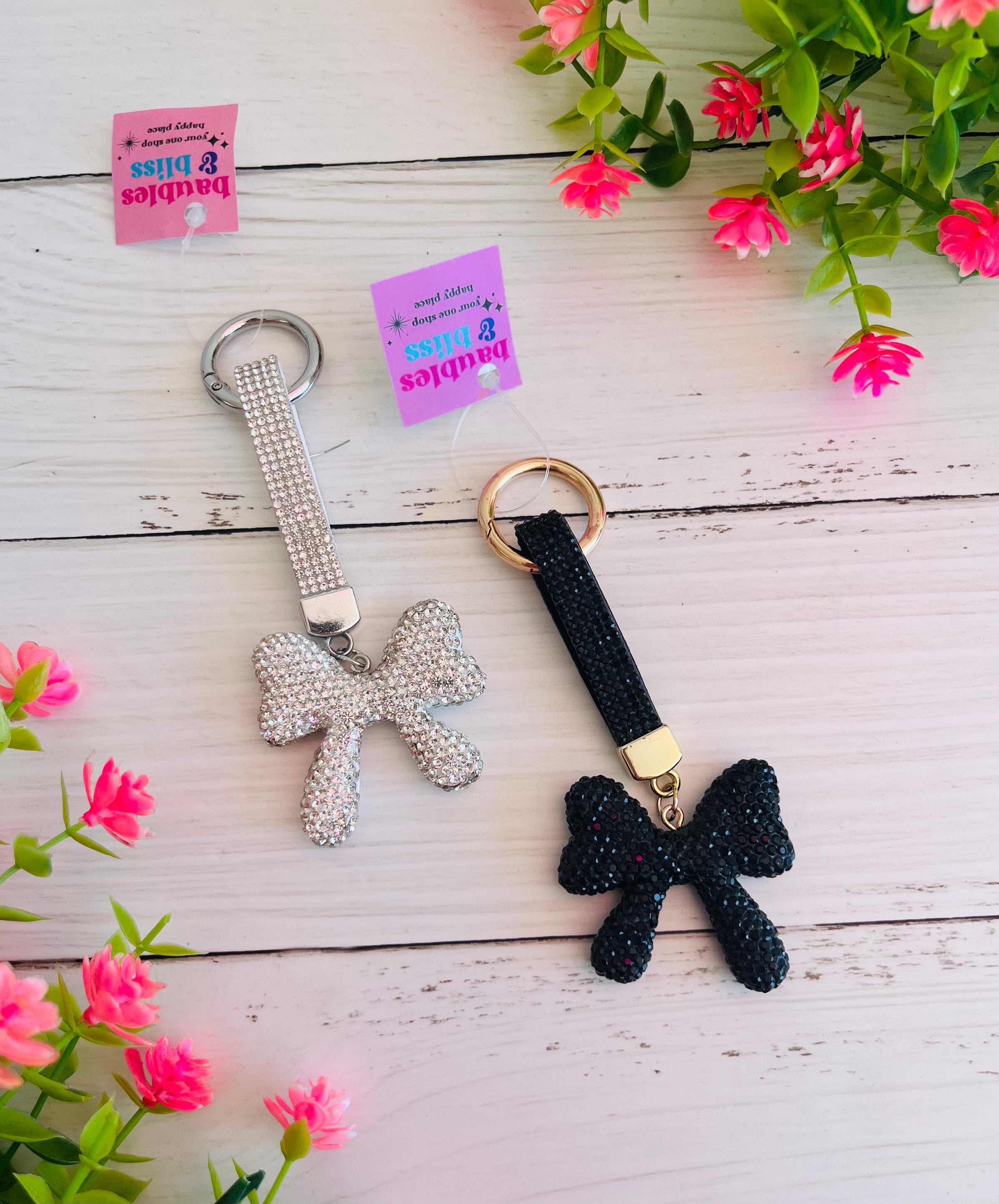 All Blinged Out Glitzy Bow Bag Charm Keychain