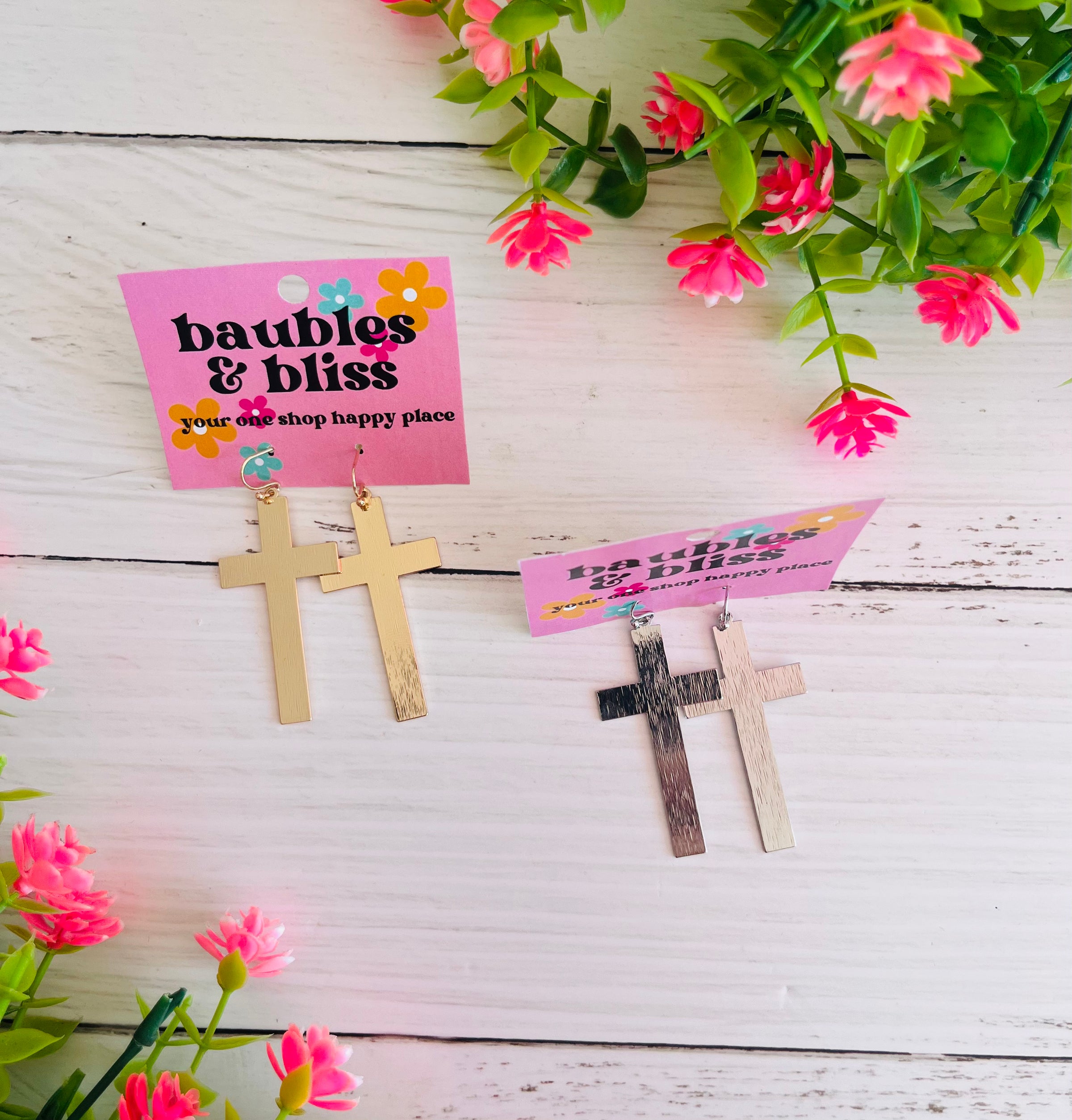 Keep The Faith Cross Metal Earrings