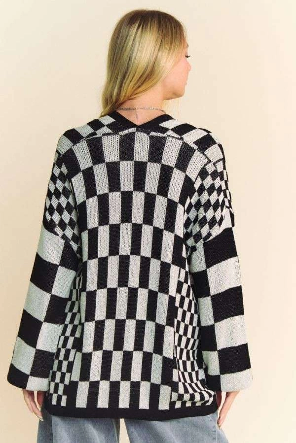 This bold black-and-white checkered cardigan is the ultimate statement piece your closet has been waiting for! With its oversized fit, soft knit feel, and eye-catching pattern, it’s the perfect throw-on-and-go layer. Dress it down with your favorite graphic tee, jeans and sneakers or dress it up for work or church!