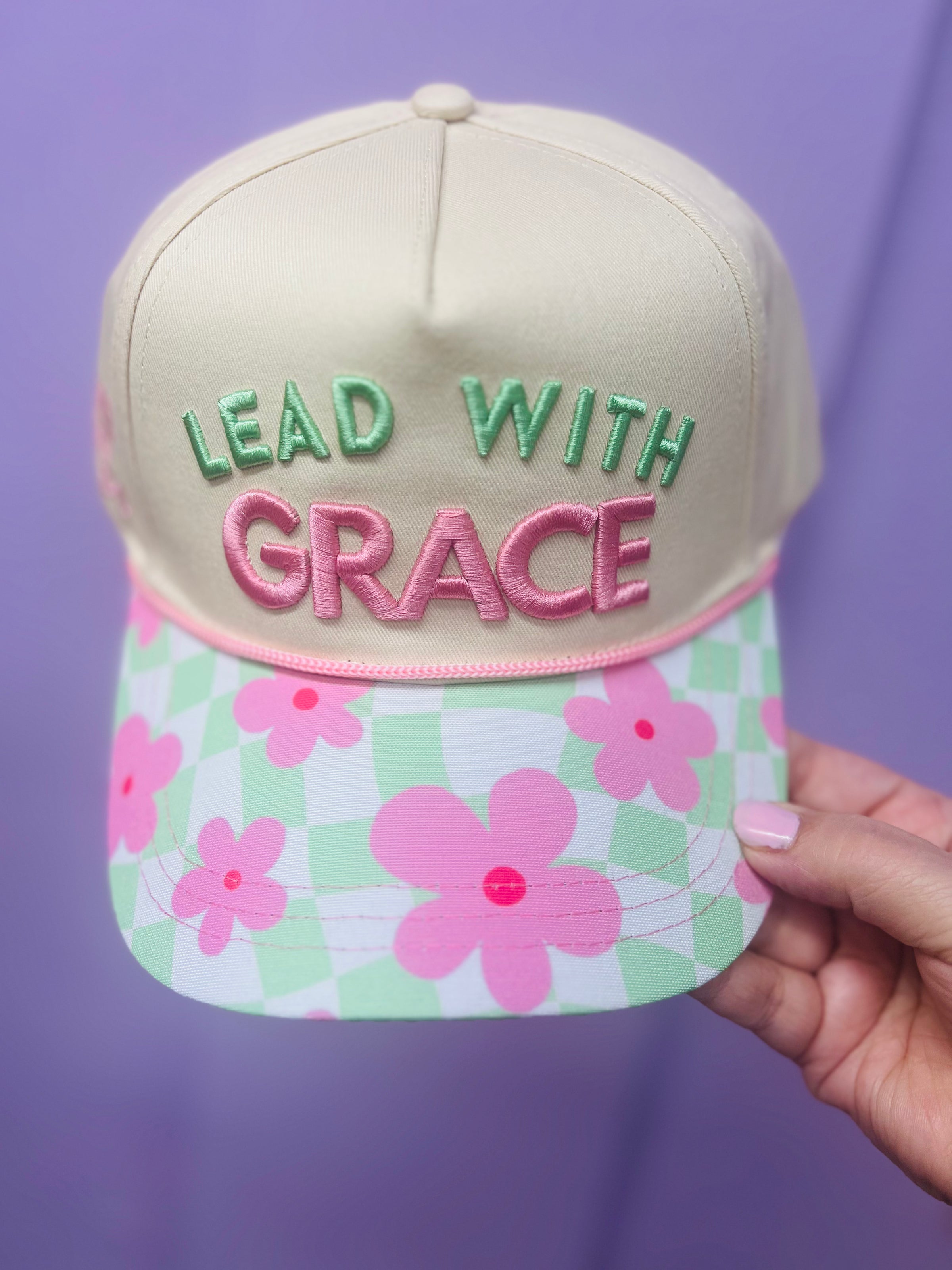 Lead With Grace Puffy Embroidered Tan Patchwork Hat