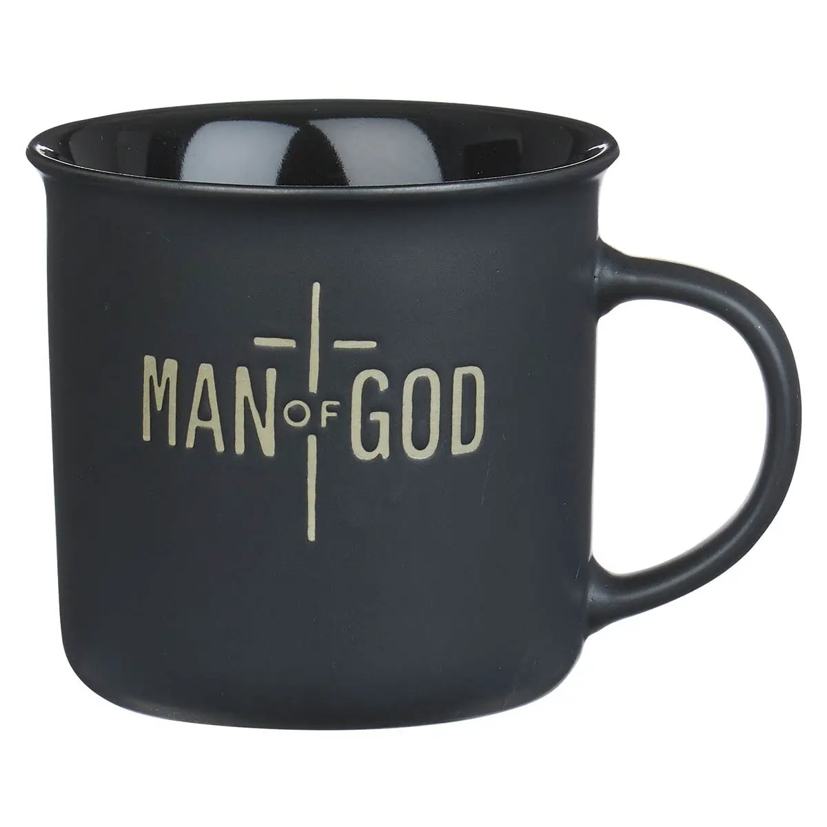 Camp-style ceramic mug featuring 'Man of God' text and 1 Timothy 6:11 scripture