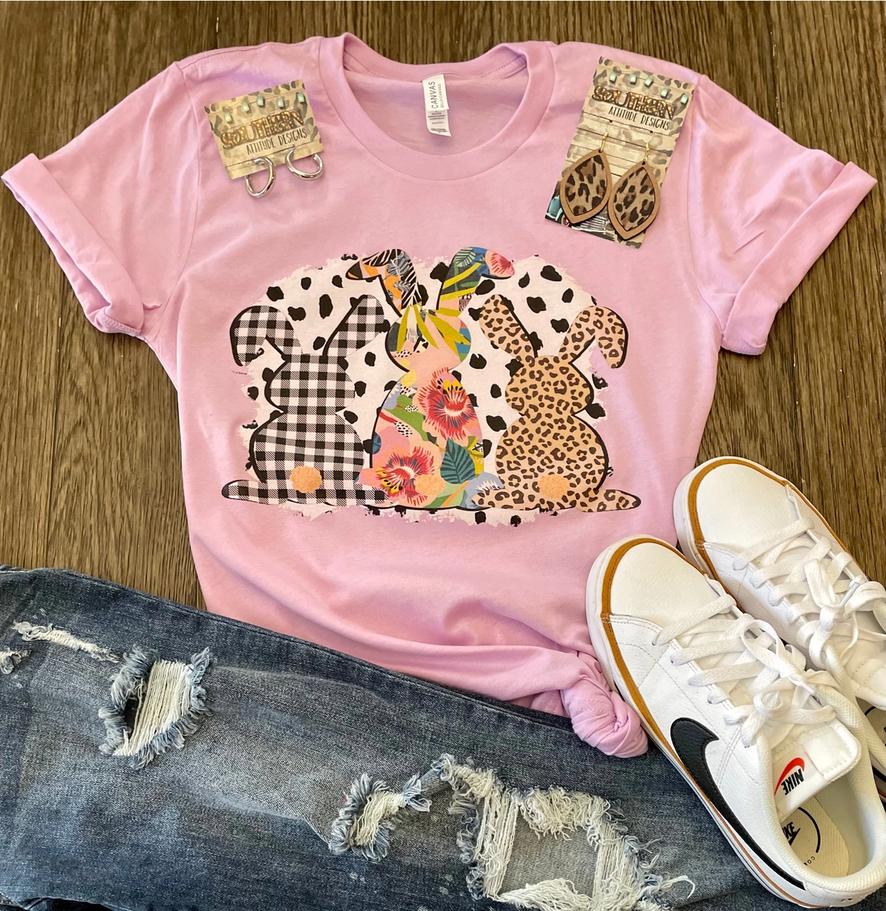 Three Bunnies Mix Patterns Tee