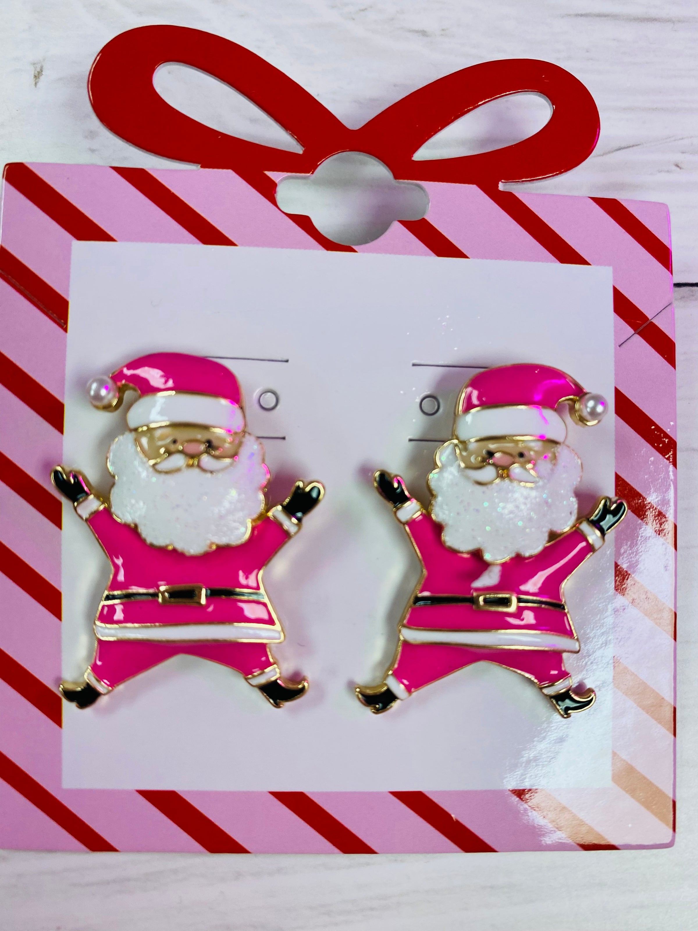 Jolly Pink Santa Dangle Earrings