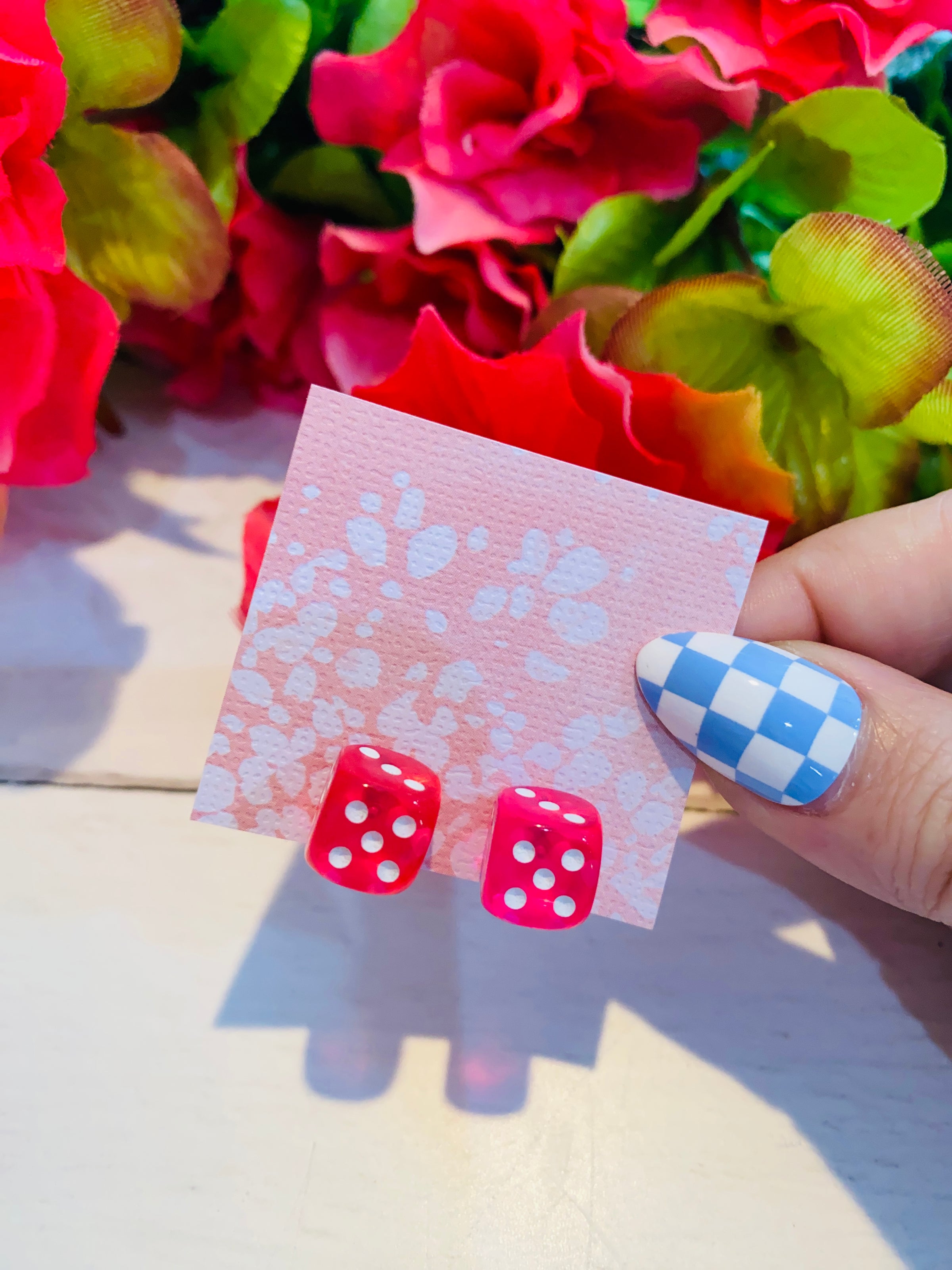 Pretty Pink Dice Stud Earrings