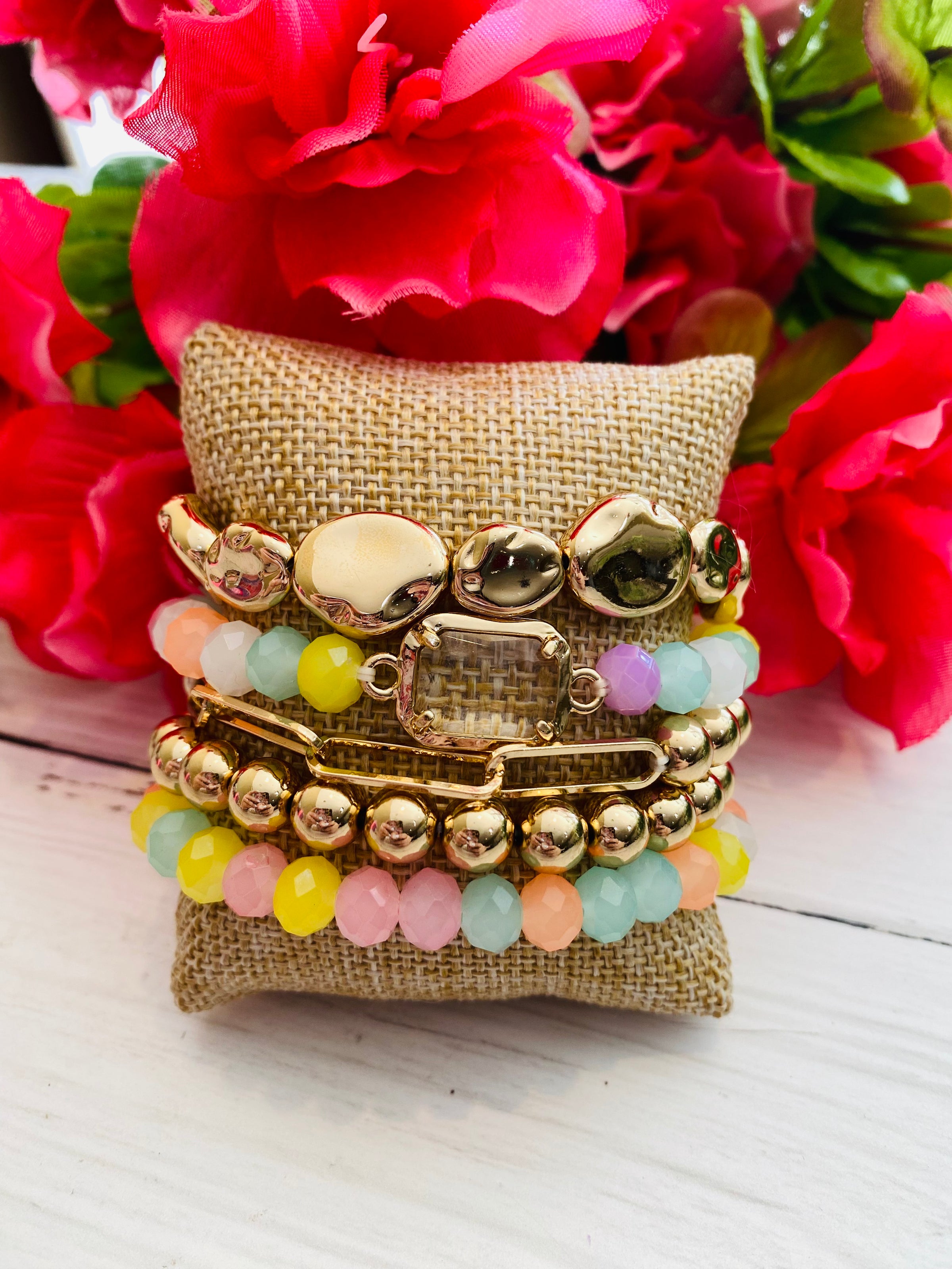 Pop of Spring Multi Gold Bracelet Stack